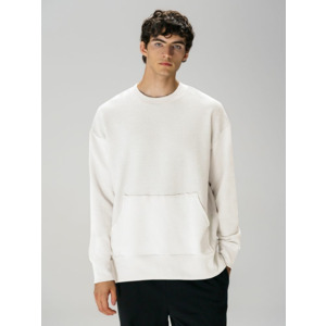 Благодаря особой конструкции, где часть деталей — перед и спинка — вывернута наизнанку, свитшот приобретает запоминающийся вид. Так внутренняя, обычно незаметная сторона материала превращается в лицевую: миниатюрные петельки бывшей изнанки становятся настоящим украшением толстовки, добавляя ей оригинальности и эффект невероятно приятной плюшевости.
