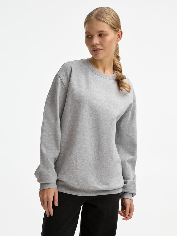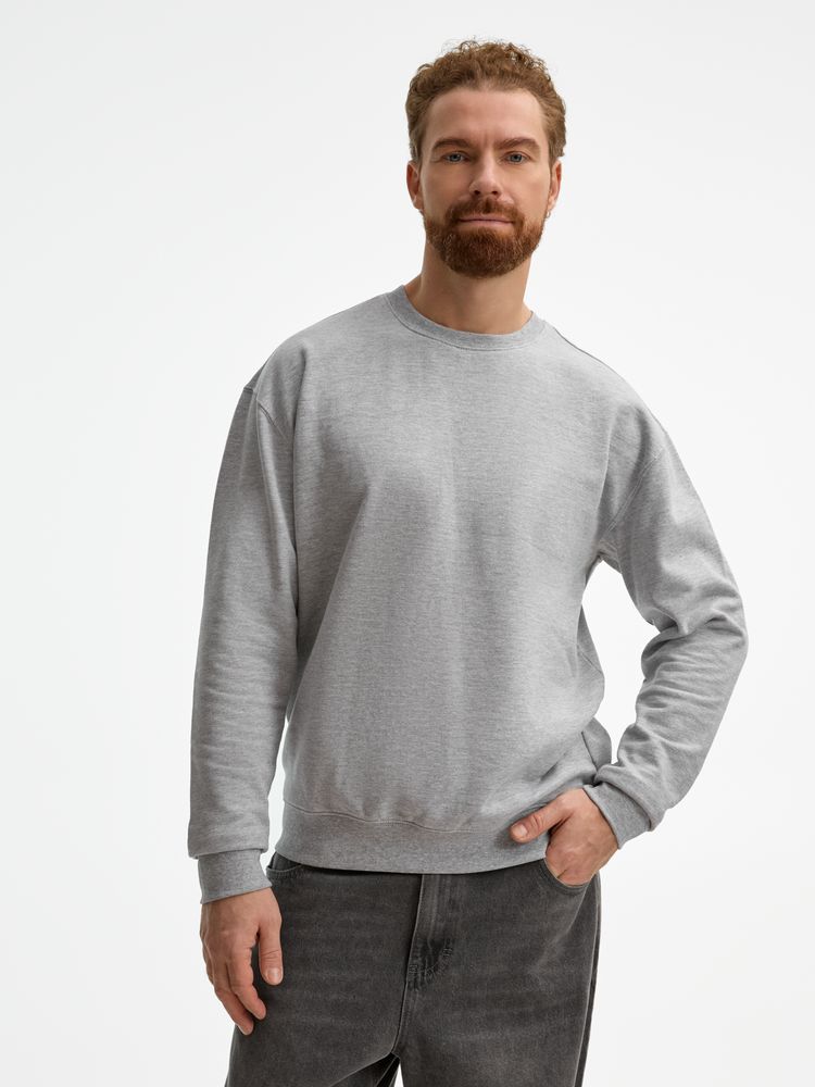 Свитшот унисекс из хлопка и переработанного полиэстера с круглым вырезом и втачным рукавом.