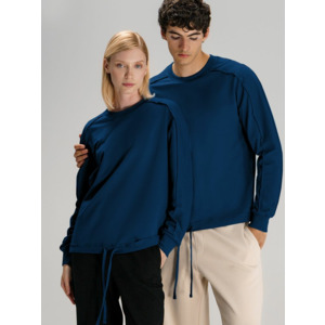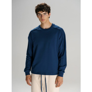 Свитшот унисекс оригинального пошива вдохнет новую жизнь в повседневный гардероб и добавит стильную нотку легкой небрежности в образ. Особая конструкция, где часть деталей — плечи и рукава — вывернута наизнанку, создает необычный притягательный эффект.