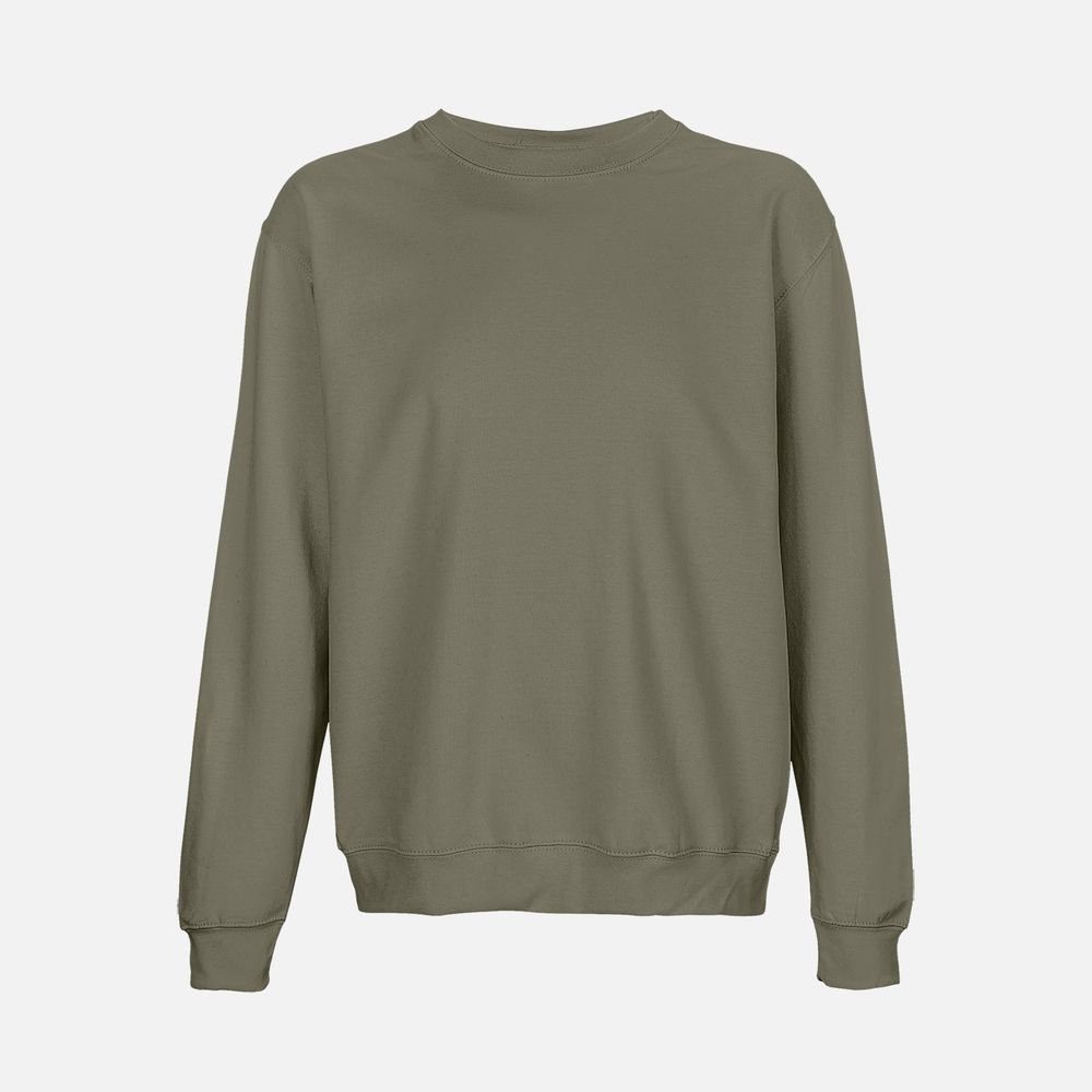 Свитшот унисекс из хлопка и переработанного полиэстера с круглым вырезом и втачным рукавом.
