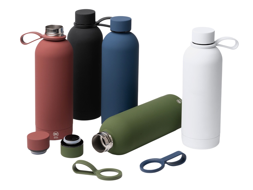 Термобутылка из переработанной нержавеющей стали 304. Мягкая прорезиненная поверхность на корпусе. Удобная силиконовая ручка для переноски. Оснащена противокапельной системой благодаря силиконовому кольцу, встроенному во внутреннюю часть крышки. Крышка и ручка соответствуют цвету корпуса. Объем: 500 мл. - Переработанная нержавеющая сталь 304 - Защита от капель - Нельзя мыть в посудомоечной машине - Поставляется в эко коробке