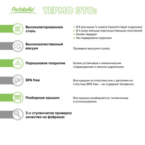 Корпус выполнен из высоколегированной стали 304 марки как внутри, так и снаружи, с прочным порошковым покрытием. Надежная завинчивающаяся крышка снабжена удобной силиконовой вставкой для комфортного открытия и надежного хвата.