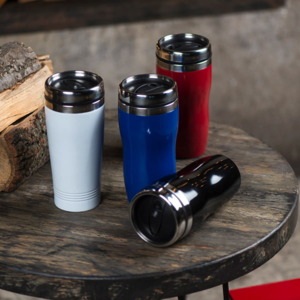 Термокружка, с двойными стенками из стали 304 и крышкой с силиконовым уплотнителем. Идеальный продукт для промоакций. Сохраняет температуру напитков до 3 часов. Внимание! Конструкция клапана на крышке не предусматривает 100% защиту от протекания. При переворачивании жидкость может вытекать из-под клапана для питья.