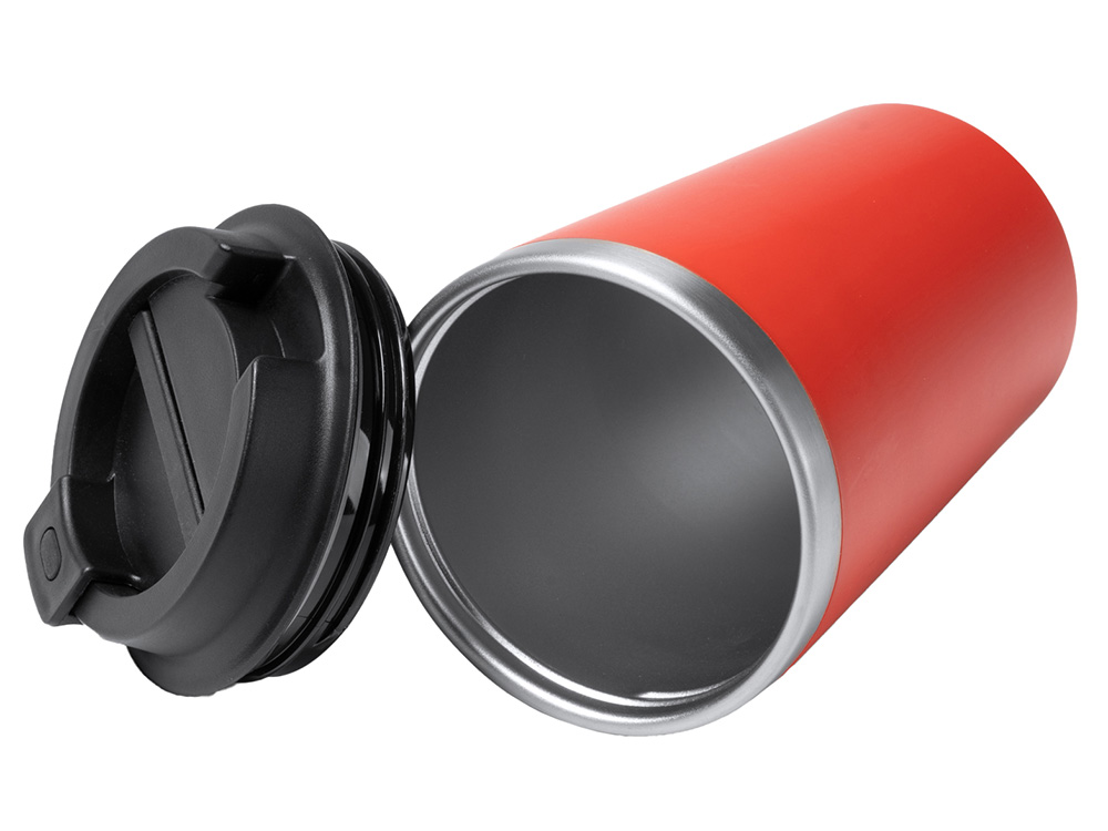 Термостакан с двойными стенками. Внутренняя часть выполнена из нержавеющей стали 304, внешняя — из полипропилена. Крышка винтовая с дозатором. Объём: 350 мл. Поставляется в дизайнерской коробке.
