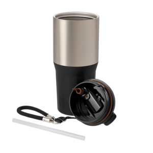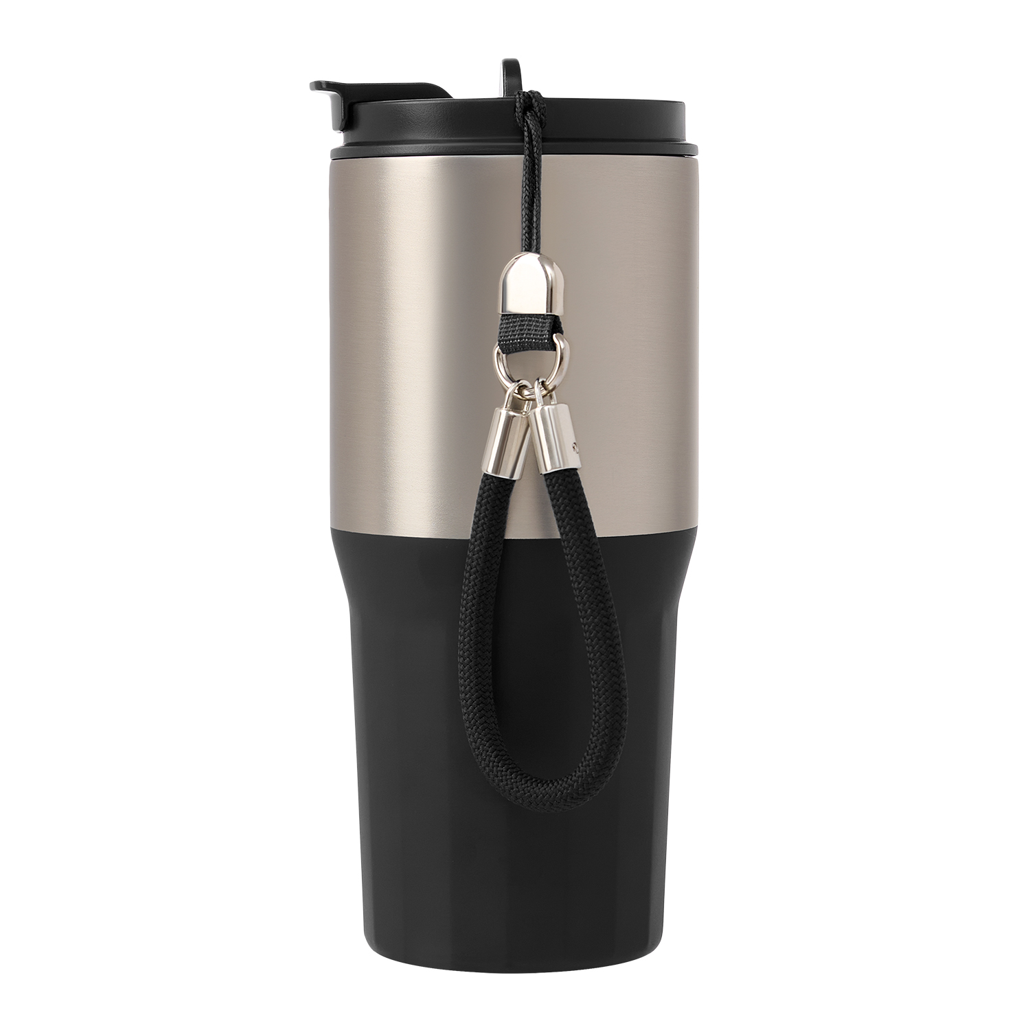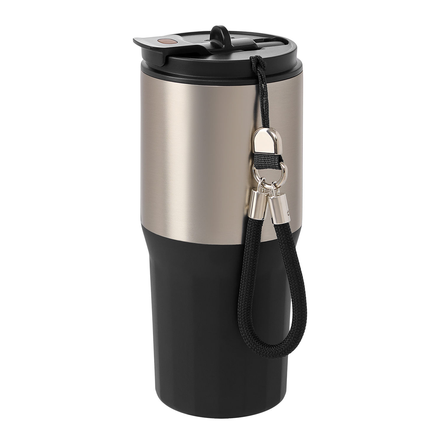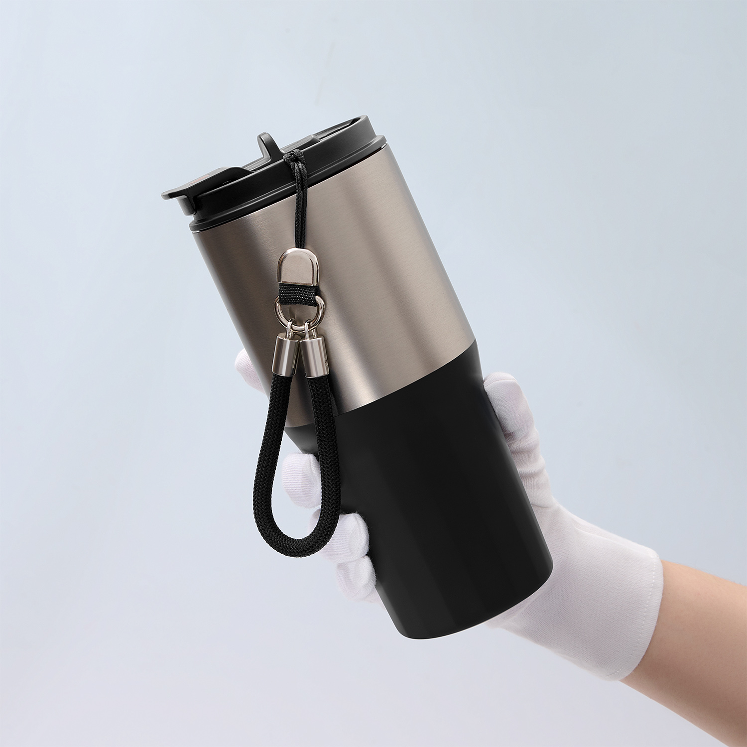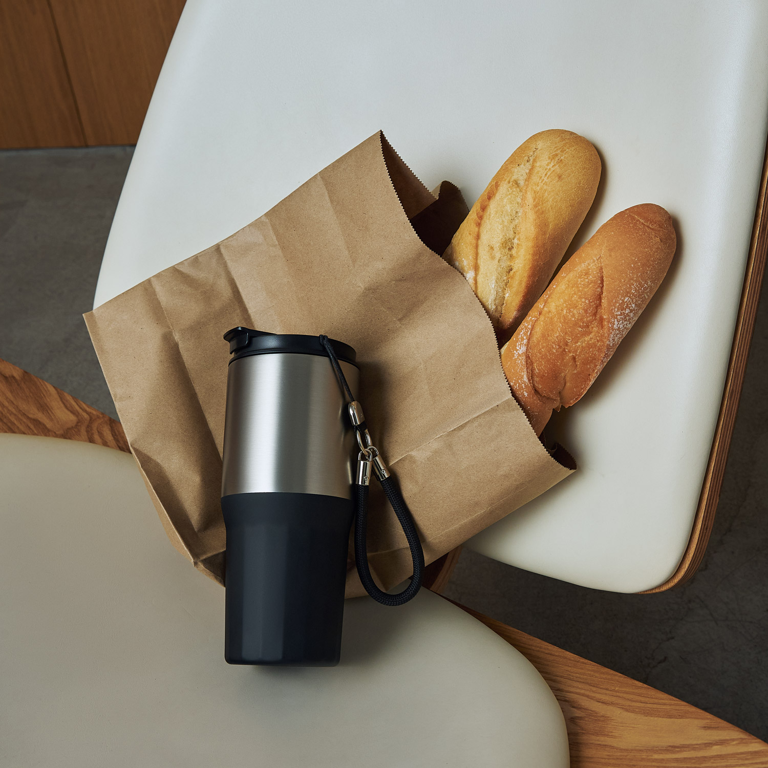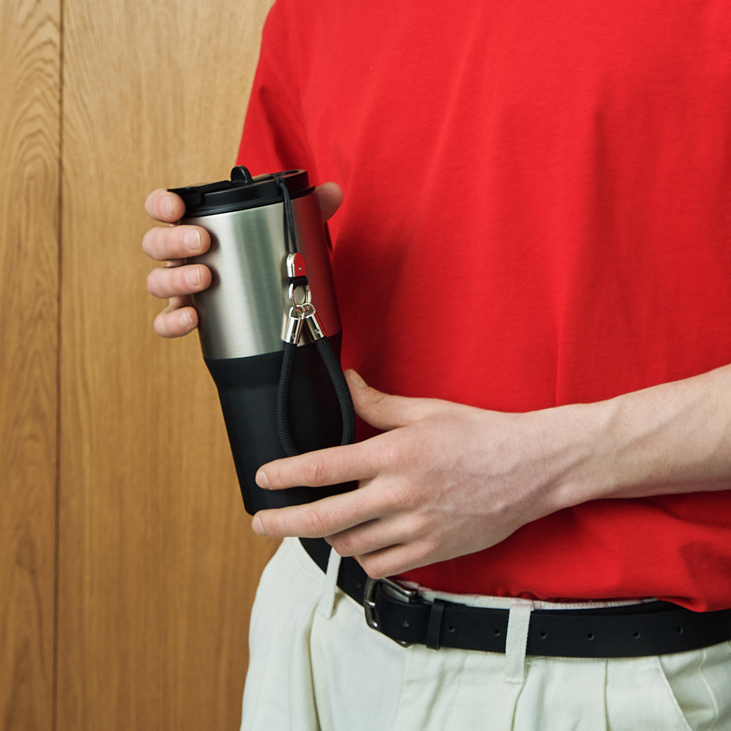 Внутренний слой из пищевой стали 304 марки, которая не впитывает запахи, не окисляется и сохраняет вкус напитка. Внешний корпус надежно защищен 201 сталью с комбинированным покрытием, где матовая текстура сочетается с гладким акцентом. В комплекте идет удобный, прочный и легко снимаемый ремешок, который превращает термокружку в идеальный аксессуар для активного образа жизни.