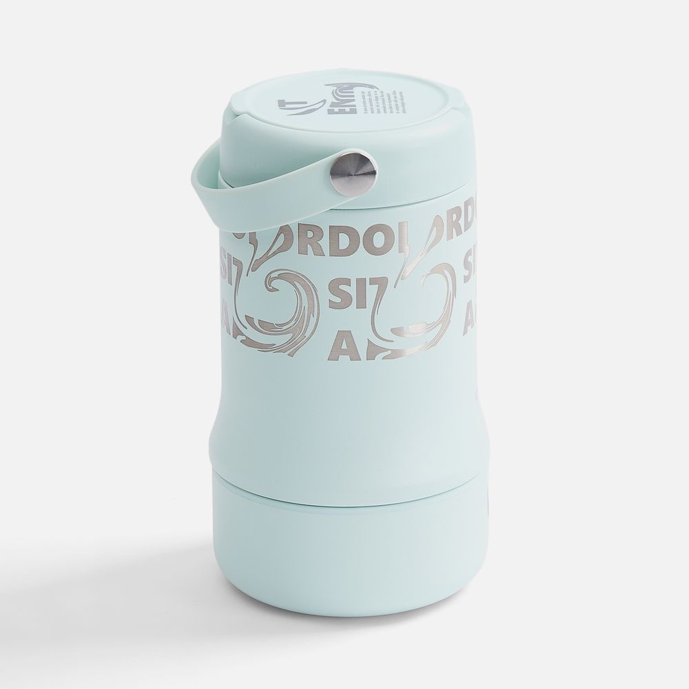 Tabenodo — универсальный многофункциональный термос для работы, школы, похода и путешествия. В компактном корпусе разместились ложка, тарелка и емкость для любимого блюда. Матовая поверхность приятна на ощупь, а силиконовая ручка удобна для переноски.