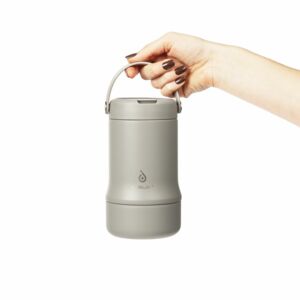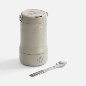Tabenodo — универсальный многофункциональный термос для работы, школы, похода и путешествия. В компактном корпусе разместились ложка, тарелка и емкость для любимого блюда. Матовая поверхность приятна на ощупь, а силиконовая ручка удобна для переноски.