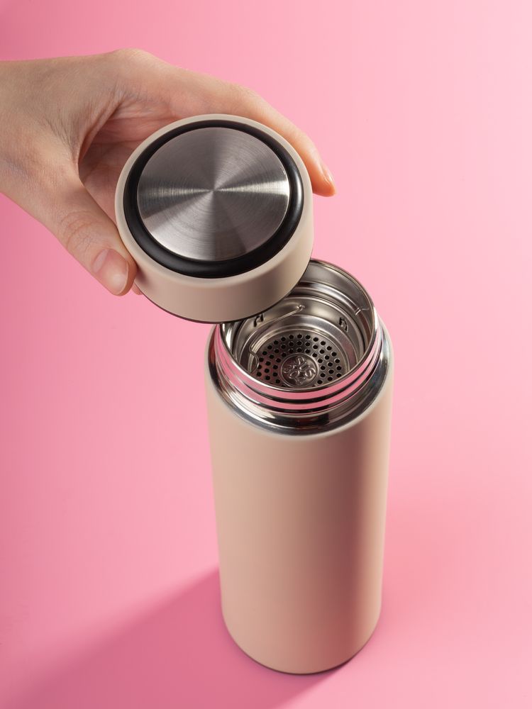 Компактный термос Percola пригодится и в городе, и на природе. Съемное ситечко поможет заварить чистую чашку чая или кофе, а цилиндрический корпус даст широкие возможности для маркетинговых сообщений.