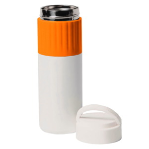 Термос TURBO с двойными стальными стенкамиСтильный белый матовый корпус термоса с цветной силиконовой манжетойДержатель на крышке для удобства переноскиГерметичная навинчивающаяся крышка не даст напитку пролиться