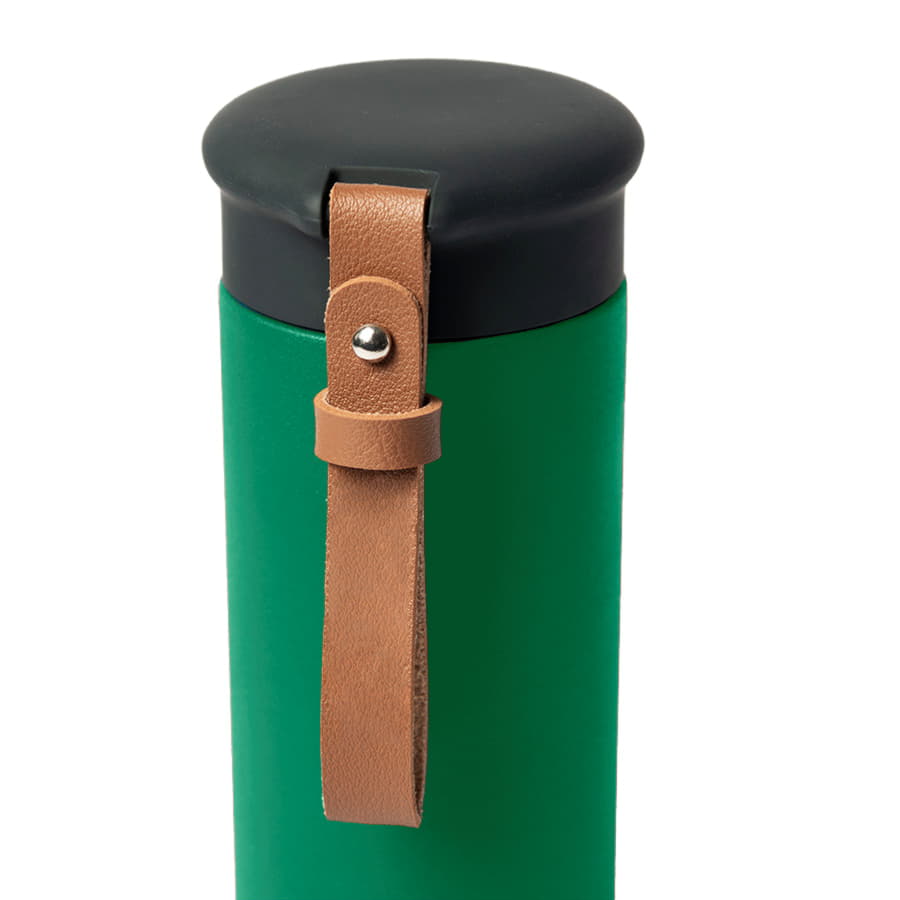 Вакуумный термос STRIPE с двойными стальными стенкамиСтильный матовый корпус термоса из нержавеющей стали (марка 304)Удобный ремешок из искусственной кожи, подходит для персонализацииГерметичная крышка с покрытием soft-touch не даст напитку пролиться