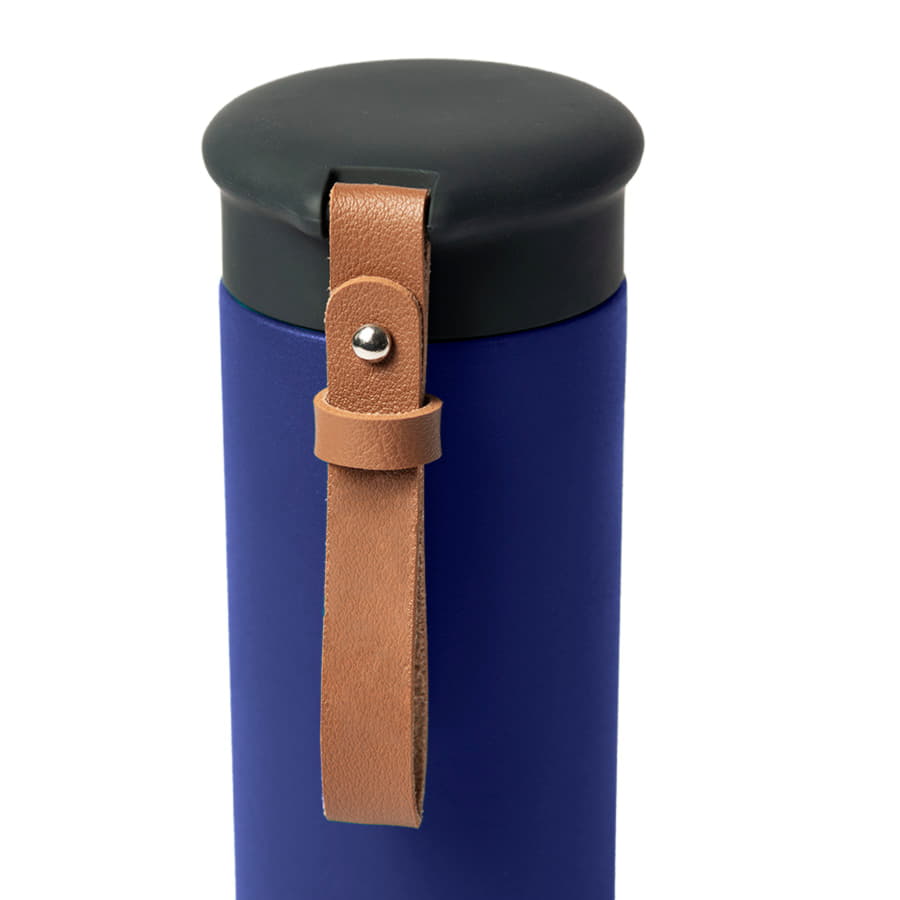 Вакуумный термос STRIPE с двойными стальными стенкамиСтильный матовый корпус термоса из нержавеющей стали (марка 304)Удобный ремешок из искусственной кожи, подходит для персонализацииГерметичная крышка с покрытием soft-touch не даст напитку пролиться