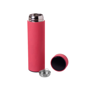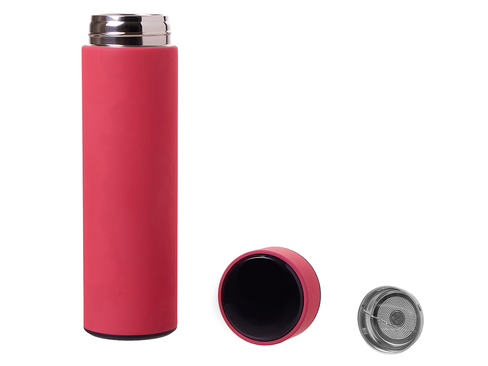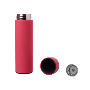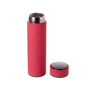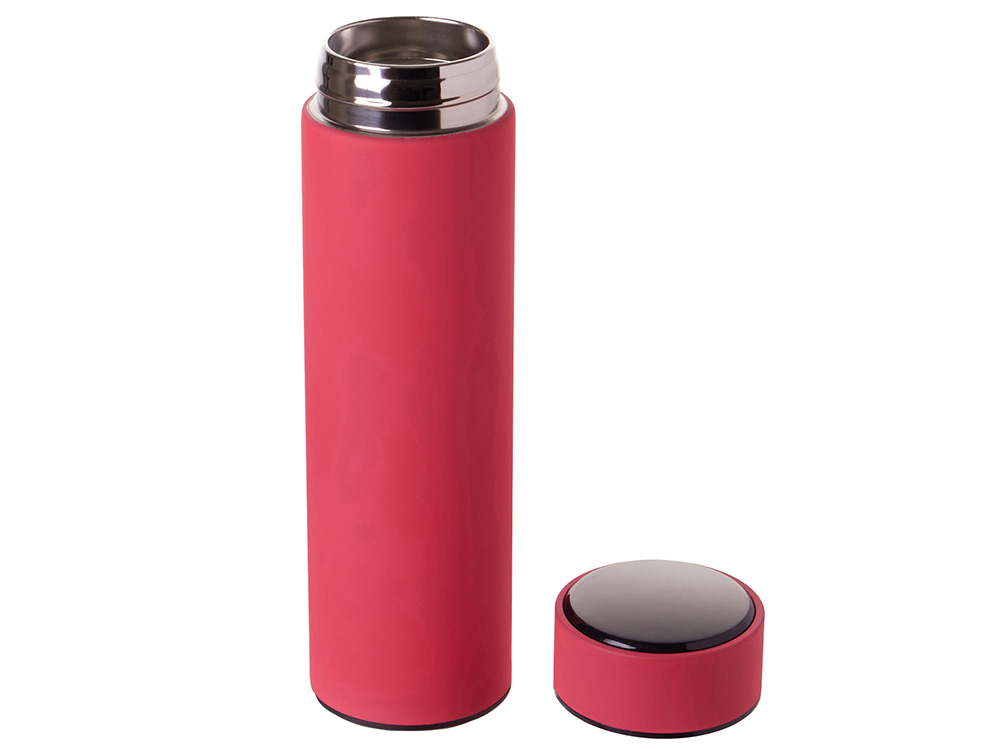 Термос из нержавеющей стали, покрытый цветным soft touch, с крышкой, в которой встроен термометр и LED дисплей, показывающий температуру внутри термоса. Объем: 500 мл. Упаковка: каждый термос в крафт коробке.