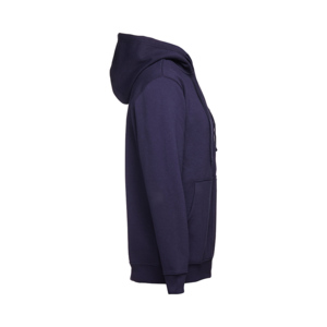 Толстовка с капюшоном на молнии. Внутренняя сторона с начёсом. Подкладка в капюшоне из тонкого трикотажа в тон основного полотна. Потайная центральная молния. Манжеты и низ изделия обработаны рибом 1х1.