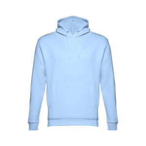 Толстовка унисекс с капюшоном. Внутренняя сторона с начесом. Манжеты и низ изделия обработаны рибом 1х1. Карман-кенгуру. Капюшон с отверстиями и кулиской в тон изделия.