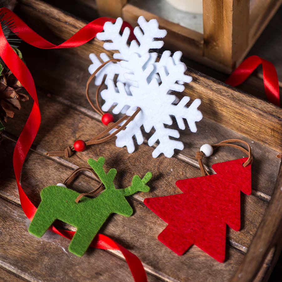 Новогодние украшения из фетра добавят в атмосферу праздника в вашем доме нотки тепла и уюта. Они совершенно безопасны для маленьких детей. Вы можете использовать их для различного декора дома — это могут быть игрушки на елку, гирлянды, украшения на стены, для праздничного украшения стола, каминной полки, стульев, люстры и так далее. Фетр — это такой специфический волокнистый материал, который известен своей прочностью и долговечностью. Он отлично персонализируется методом термотрансфера