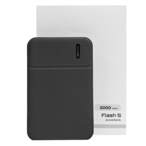 Универсальный аккумулятор Flash 5 (5000 мАч) с подсветкой и soft touch, черный, 9,8х6.3х1,3 см