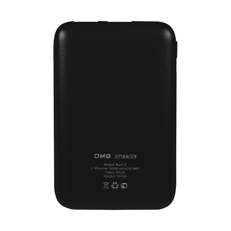 Универсальный аккумулятор Num 5 (5000 мАч), черный, 10,2х6.3х1,2 см