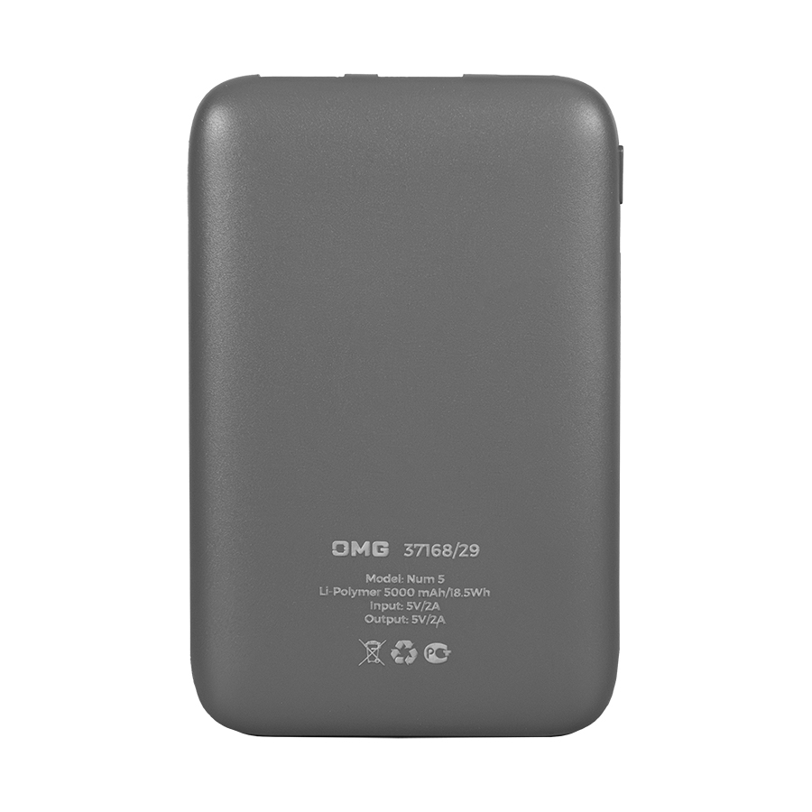Универсальный аккумулятор Num 5 (5000 мАч), серый, 10,2х6.3х1,2 см