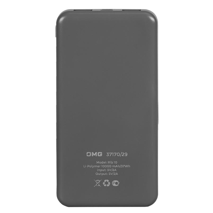 Универсальный аккумулятор Rib 10 (10000 мАч), серый, 13,5х6.8х1,5 см