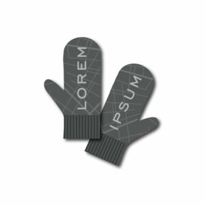 Варежки с вывязанным логотипом и индивидуальным рисунком в фирменной цветовой гамме.