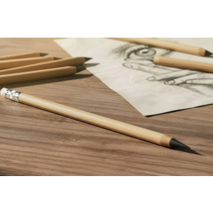 Экоответственный карандаш с защитным колпачком и ластиком. Пищущий элемент выполнен из сверхпрочного графита, длины письма которого хватит до 30 000 метров.