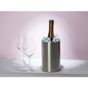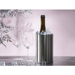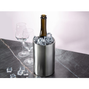 Ведёрко для охлаждения вина «Blanc» изготовлено из нержавеющей стали. Классический минималистичный дизайн этого ведёрка будет уместен для любого застолья. Ещё один плюс – ведёрко, несмотря на достаточный объем в 1600 мл, не занимает много места на столе. Многие вина, в том числе игристые, и крепкий алкоголь для максимально полного раскрытия вкуса необходимо пить в охлажденном виде. Благодаря двойным стенкам «Blanc» дольше сохраняет температуру. Использование ведёрка позволит полностью сервировать стол, не бегая за напитками к холодильнику и сохранив при этом их вкусовые качества. Пользоваться ведёрком очень просто и удобно: 1. Поместите ведёрко в холодильник примерно за час до использования. 2. Наполните его льдом так, чтобы дно было закрыто минимум двухсантиметровым слоем. 3. Поместите бутылку в «Blanc» и подайте на стол.