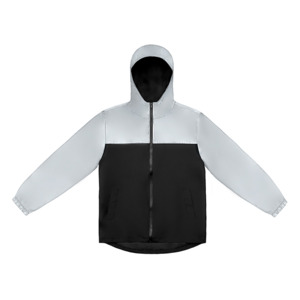 Streetwear-ветровка с контрастным дизайном: верх переда и спинки, рукава и капюшон — из светоотражающей ткани, низ — из прочной чёрной полиэстеровой ткани. Модель на подкладке, со спинкой длиннее переда. Детали: водонепроницаемая молния, боковые наклонные карманы с листочкой, манжеты на резинке, удобный капюшон, кулиска по низу. • Заметность в темноте — светоотражающая верхняя часть повышает безопасность. • Защита от ветра и дождя — влагостойкая молния и плотная ткань. • Комфортная посадка — удлинённая спинка и подкладка для межсезонья. • Универсальный городской стиль — легко сочетается с повседневным гардеробом.