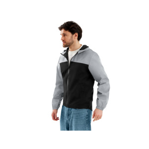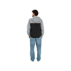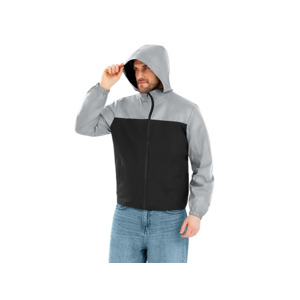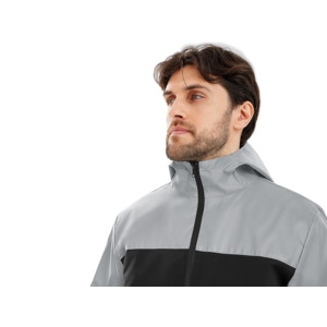 Streetwear-ветровка с контрастным дизайном: верх переда и спинки, рукава и капюшон — из светоотражающей ткани, низ — из прочной чёрной полиэстеровой ткани. Модель на подкладке, со спинкой длиннее переда. Детали: водонепроницаемая молния, боковые наклонные карманы с листочкой, манжеты на резинке, удобный капюшон, кулиска по низу. • Заметность в темноте — светоотражающая верхняя часть повышает безопасность. • Защита от ветра и дождя — влагостойкая молния и плотная ткань. • Комфортная посадка — удлинённая спинка и подкладка для межсезонья. • Универсальный городской стиль — легко сочетается с повседневным гардеробом.