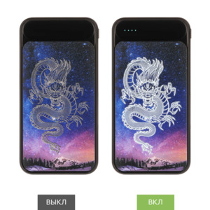 Внешний аккумулятор Starlight Plus 10000 mAh с расширенными возможностями персонализации покорит любого! Вся верхняя панель корпуса доступна для нанесения УФ-печати, которая позволяет создавать эффект гравировки, эффект витража и эффект день/ночь. Обратите внимание: из-за особенностей технологии производства, этот аккумулятор поставляется только с персонализацией.