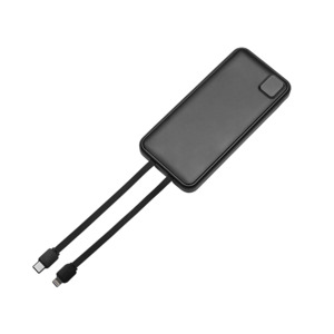 Удобный внешний аккумулятор с встроенными кабелями USB-C и Lightning — ваш надежный партнер в путешествиях, на встречах и в повседневных задачах. Цифровой дисплей в реальном времени показывает точный остаток заряда, а компактные габариты делают его таким же удобным, как смартфон. Прочный корпус из переработанного АБС-пластика и емкость 10000 мАч обеспечивают долгую работу даже при интенсивном использовании. Идеальный выбор для тех, кто ценит комфорт и функциональность в одном устройстве. Продуманная упаковка: для открытия просто потяните за язычок, и появится гаджет с нанесением. - Встроенные кабели USB-C и Lightning — больше не нужно искать провода - Цифровой дисплей с точным отображением заряда - Удобная зона под нанесение логотипа - Компактный размер, сопоставимый с телефоном — легко помещается в карман, сумку или портфель. - Упаковка с удобным и быстрым открытием