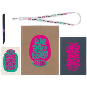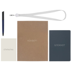 - Материал товара - блокнот - искусственная кожа, открытка - бумага, пакет - картон, ручка - пластик с покрытием софт-тач, ланьярд с ретрактором - полиэстер, металл, пластик