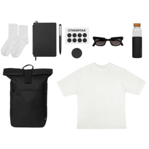 Практичный унисекс welcome pack станет прекрасным началом отношений с новыми сотрудниками любой компании. Такие наборы помогут быстрее влиться в корпоративную атмосферу нового бренда и команды, а ещё сразу обеспечат сотрудников необходимыми для работы предметами и просто станут приятным и запоминающимся подарком. Идеальный вариант welcome pack для сотрудников с разъездным характером работы. Футболка из плотного хлопкового джерси расширенного силуэта прекрасно подойдёт в качестве фирменной формы без строгого дресс-кода. Блокнот и ручка в тон пригодятся для заметок и планирования рабочего процесса, а бутылка для воды поможет освежиться в любой момент. Силиконовый чехол на бутылке не даст ей выскальзывать из рук. Рюкзак с дышащей сетчатой спинкой оснащён органайзером и подойдёт для ноутбука 15” или планшета. И приятные повседневные мелочи, которые можно брендировать мемами и весёлыми принтами: держатель для телефона, носки и солнечные очки. Отдельно стоит выделить стикерпак,