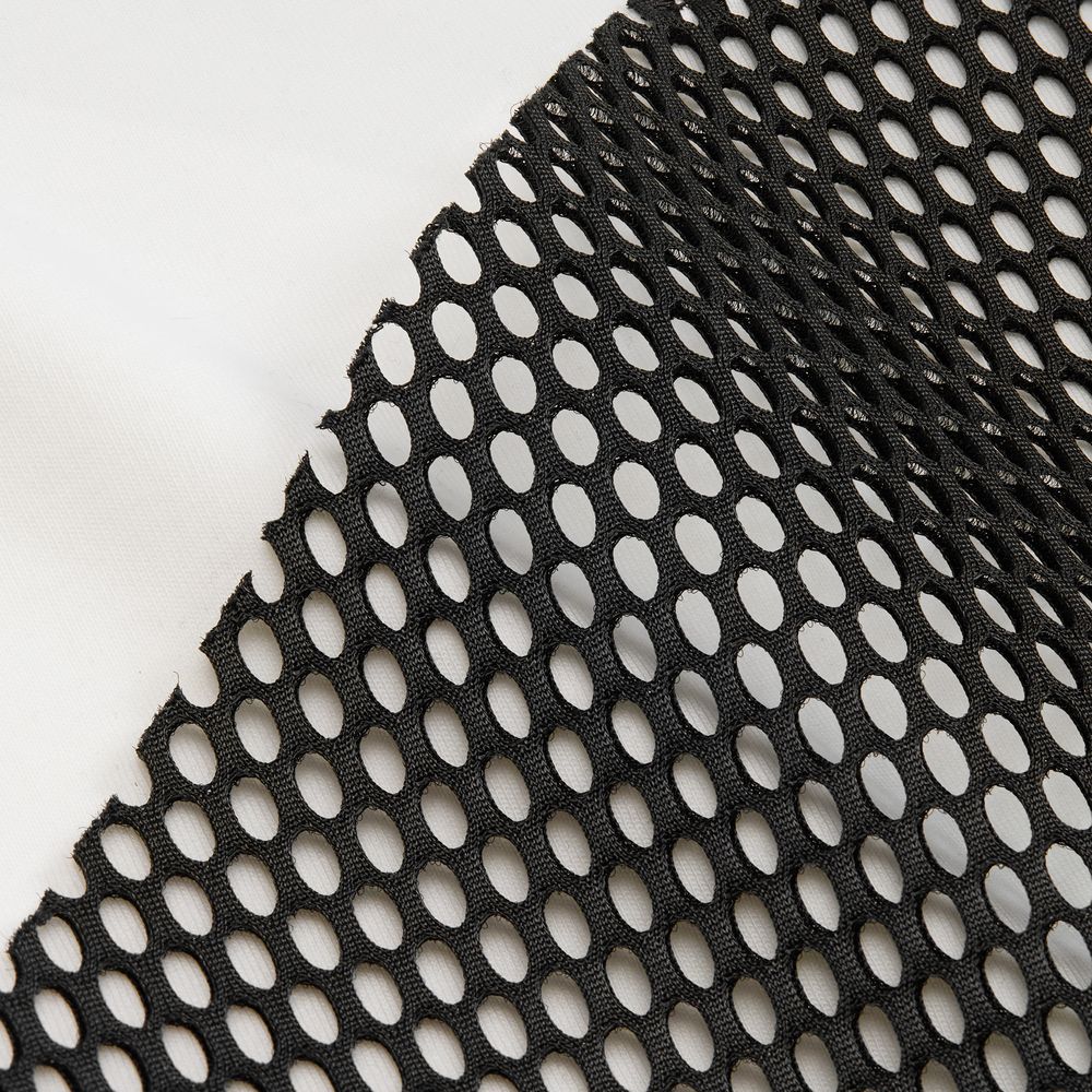 Крупная тканевая сетка Rete — это вызов стандартам. Она сразу заявляет о себе — просвечивающая и смелая. Такой материал невозможно не заметить: он придает изделию объем, брутальность и футуристичную эстетику.