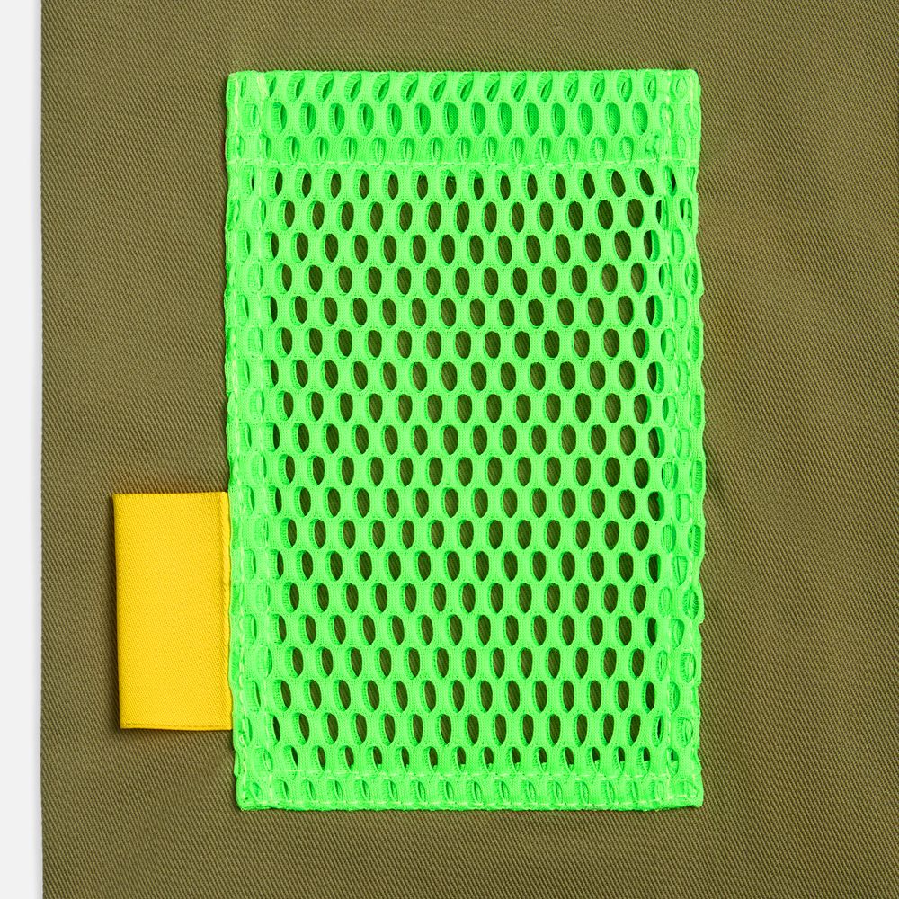 Крупная тканевая сетка Rete — это вызов стандартам. Она сразу заявляет о себе — просвечивающая и смелая. Такой материал невозможно не заметить: он придает изделию объем, брутальность и футуристичную эстетику.