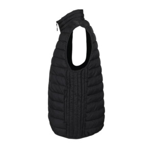 Металлические слайдеры с дополнительными модными пуллерами в тон изделия.Воротник-стойка. Эластичная тесьма по проймам и низу в тон изделия. Дополнительно жилет комплектуется сумкой-мешочком для хранения из основной ткани (но не упаковывается в неё).