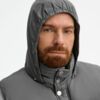 - Капюшон без подкладки убирается в воротник и плотно фиксируется на потайные кнопки