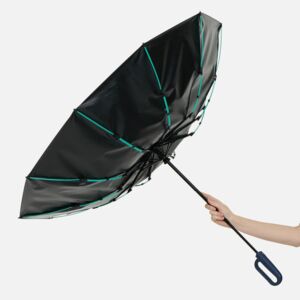 За ручку-карабин удобно подвесить зонт на рюкзак или сумку, покрытие от ультрафиолета защитит в самый солнечный день, а усиленные тройные спицы из стеклопластика выдержат коварные порывы ветра.