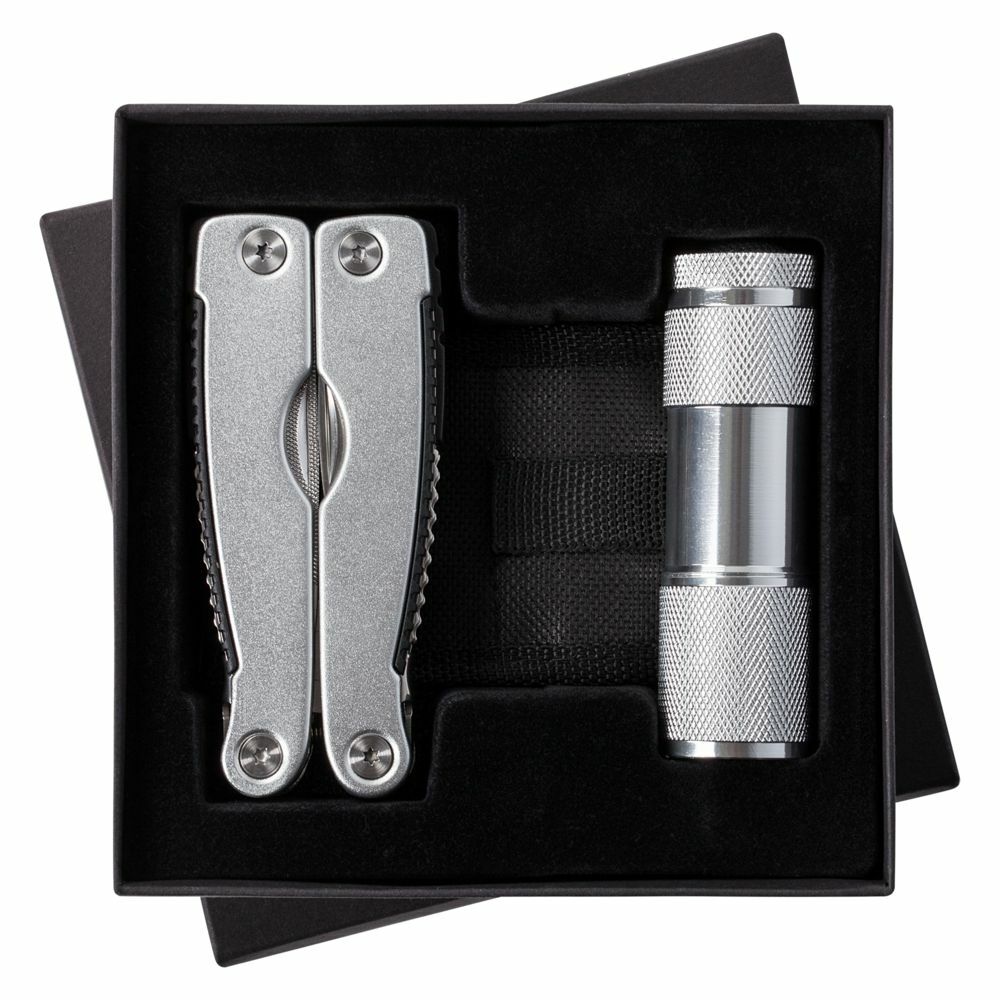 Мультитул Stinger, 104x43 мм, 13 функций, сталь/алюминий, чёрно-серебристый, в нейлоновом чехле