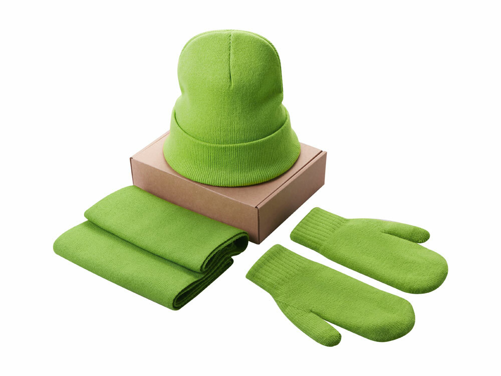 Подарочный набор с варежками, шарфом и термосом, зеленое яблоко