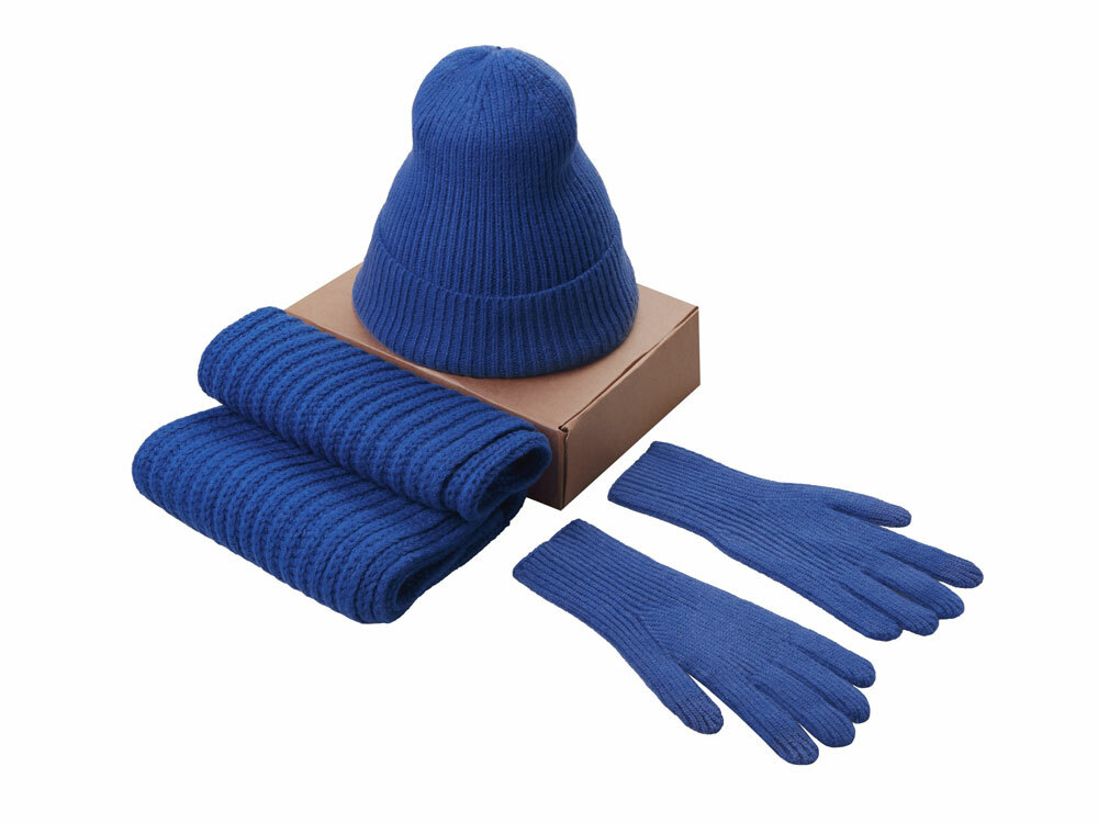 Подарочный набор с варежками, шарфом и термосом, темно-синий