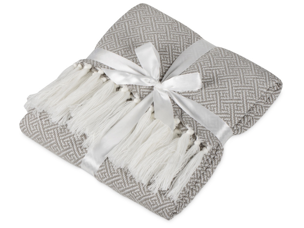 Плед акриловый Tassel с белой бахромой, темно-синий