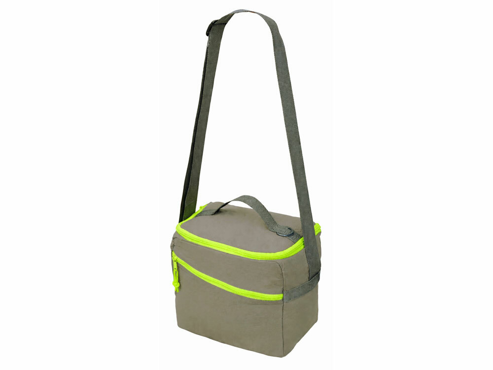 Изотермическая сумка-холодильник "Neo Classic" c контрастной молнией, серый/зеленое яблоко