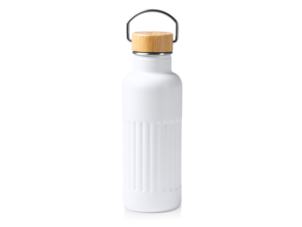 Термобутылка «Нобук» из переработанной нержавеющей стали, с бамбуковой крышкой, белый