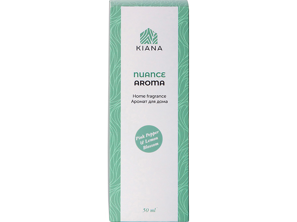 Аромадиффузоры бренда KIANA создают приятную атмосферу спокойствия, которая помогает отдохнуть и настроиться на позитивные мысли и эмоции. Pink Pepper & Lemon Blossom из серии Nuance Aroma - как прохладный летний бриз, проникающий в комнату и создающий атмосферу чистоты и уюта. Идеально для дома или офиса — там, где важны лёгкость, свежесть и ощущение гармонии каждый день. Пирамида аромата состоит из верхних, средних и базовых нот, которые освежат воздух в вашем доме и создадут приятную атмосферу. Верхние ноты: киви, ревень, розовый перец Средние ноты: арбуз, цикламен, жасмин Нижние ноты: лимонное дерево, мускус, сандал Объём диффузора 50 мл. Его будет достаточно для умеренного поддержания аромата в комнате до 15м2 в течение двух месяцев использования. Насыщенность аромата регулируется количеством используемых фибровых палочек. • Создаст приятную атмосферу спокойствия • Расслабляющий и свежий • Хватит на два месяца использования