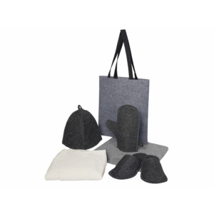 - Материал товара - шопер- 100% RPET полиэстер, коврик- 80% полиэфир, 20% шерсть, шапка, тапочки, рукавица- войлок, килт- 84% хлопок, 16% полиэстер.