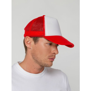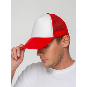 Стандартная модель с 5 клиньями без лобового шва в нестандартном исполнении. Передний клин и козырек выполнены из полиэстера с наполнителем из поролона, боковые и задние клинья — из сетки. Размер регулируется с помощью пластиковой застежки.