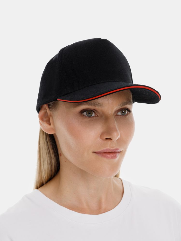 Бейсболка Classic 2.0, черная с красным кантом