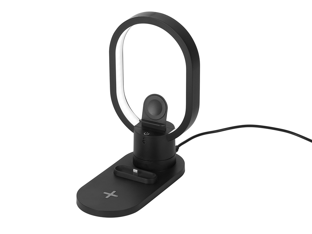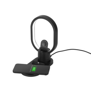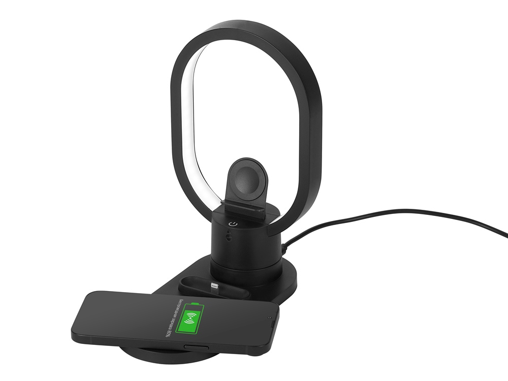 Настольная зарядная станция с лампой для трёх устройств - смартфона с поддержкой беспроводной зарядки, часов Apple и наушников Apple (разъем Lightning). Регулируемый уровень яркости (диммер). Лампу можно вращать вокруг своей оси. Для удобства транспортировки лампу можно отсоединить. • Быстрая беспроводная зарядка 15 Вт* • Одновременная зарядка 3-х устройств • Регулируемая яркость лампы • Многоуровневая интеллектуальная система защиты для безопасной зарядки *При подключении от сетевого адаптера 18 Вт