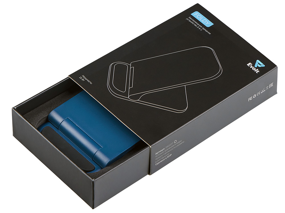 Беспроводное зарядное устройство «Foldy», 15 Вт, темно-синий