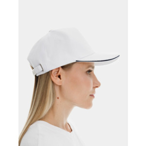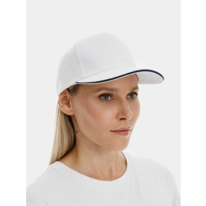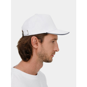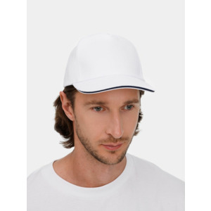 Модель бейсболки с 5-ю клиньями без лобового шва из плотного чесаного хлопка.